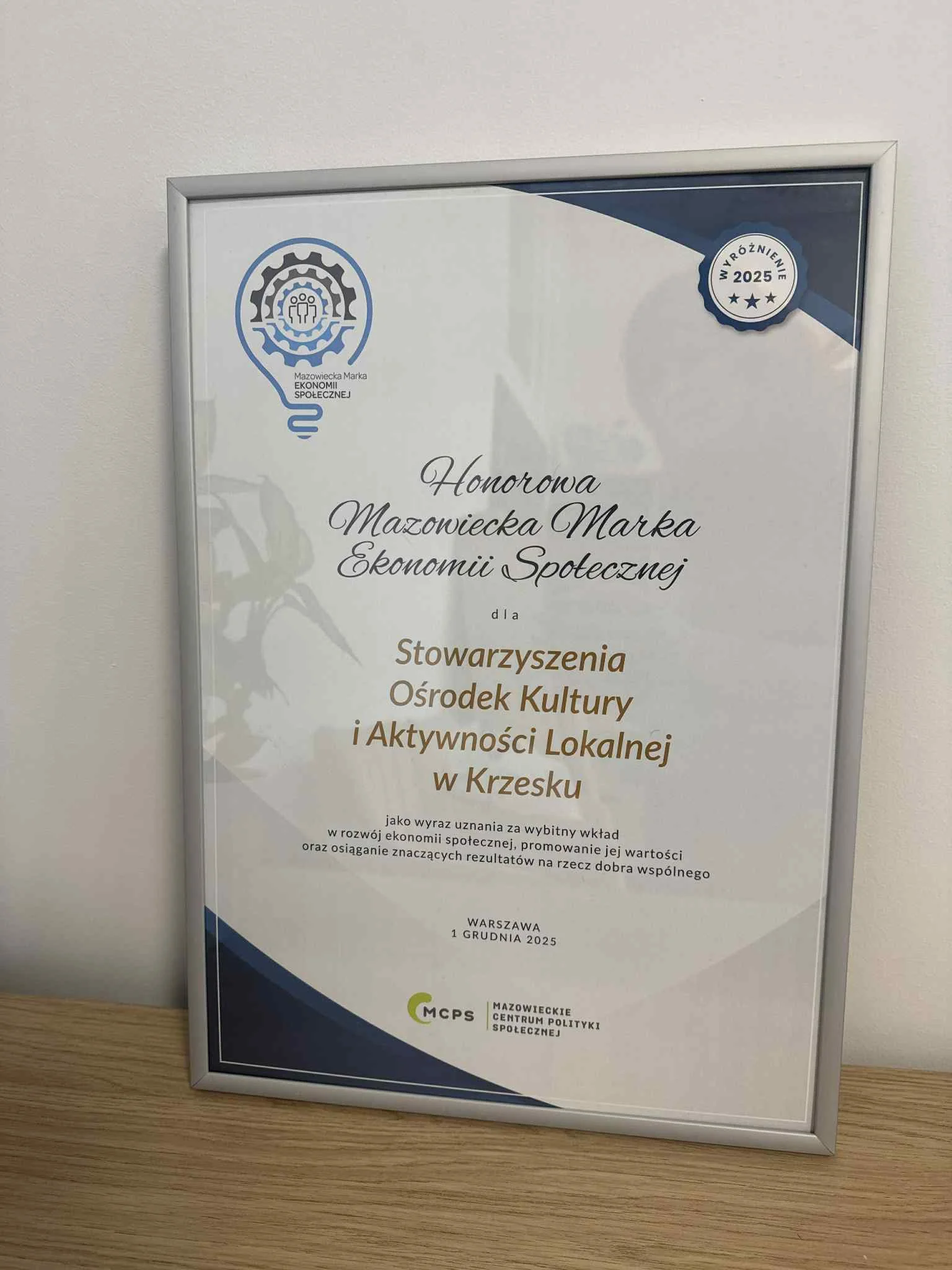 To wyjątkowe wyróżnienie przyznane przez Mazowieckie Centrum Polityki Społecznej jest dla nas potwierdzeniem, że nasza praca ma sens i realnie wpływa na rozwój ekonomii społecznej.
